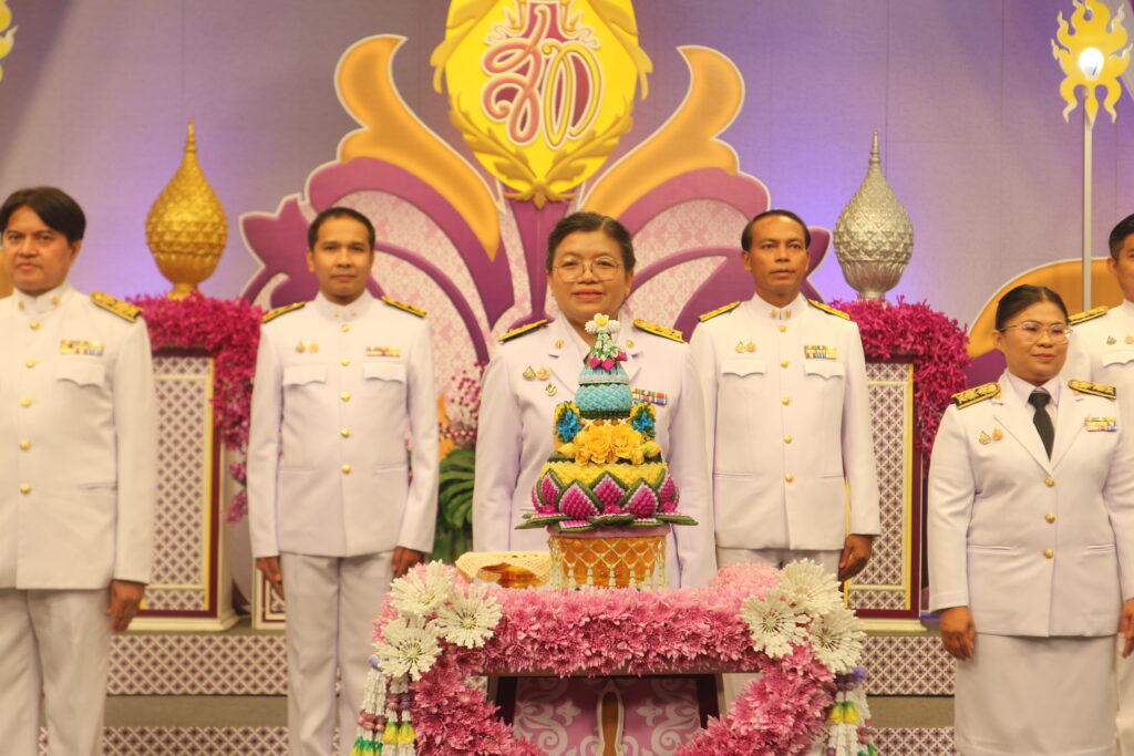 วันที่ 15 พฤษภาคม 2568 ผศ.ดร.ขวัญหทัย ใจเปี่ยม รองอธิการบดีประจำวิทยาเขตนครศรีธรรมราช พร้อมด้วย คณะผู้บริหาร ร่วมบันทึกเทปโทรทัศน์รายการพิเศษถวายพระพรชัยมงคล เนื่องในโอกาสวันเฉลิมพระชนมพรรษาสมเด็จพระนางเจ้าสุทิดา พัชรสุธาพิมลลักษณ พระบรมราชินี เพื่อเป็นการเทิดพระเกียรติและสำนึกในพระมหากรุณาธิคุณ ที่ทรงมีต่อพสกนิกรชาวไทย ณ สถานีวิทยุโทรทัศน์แห่งประเทศไทย จังหวัดนครศรีธรรมราช (NBT)