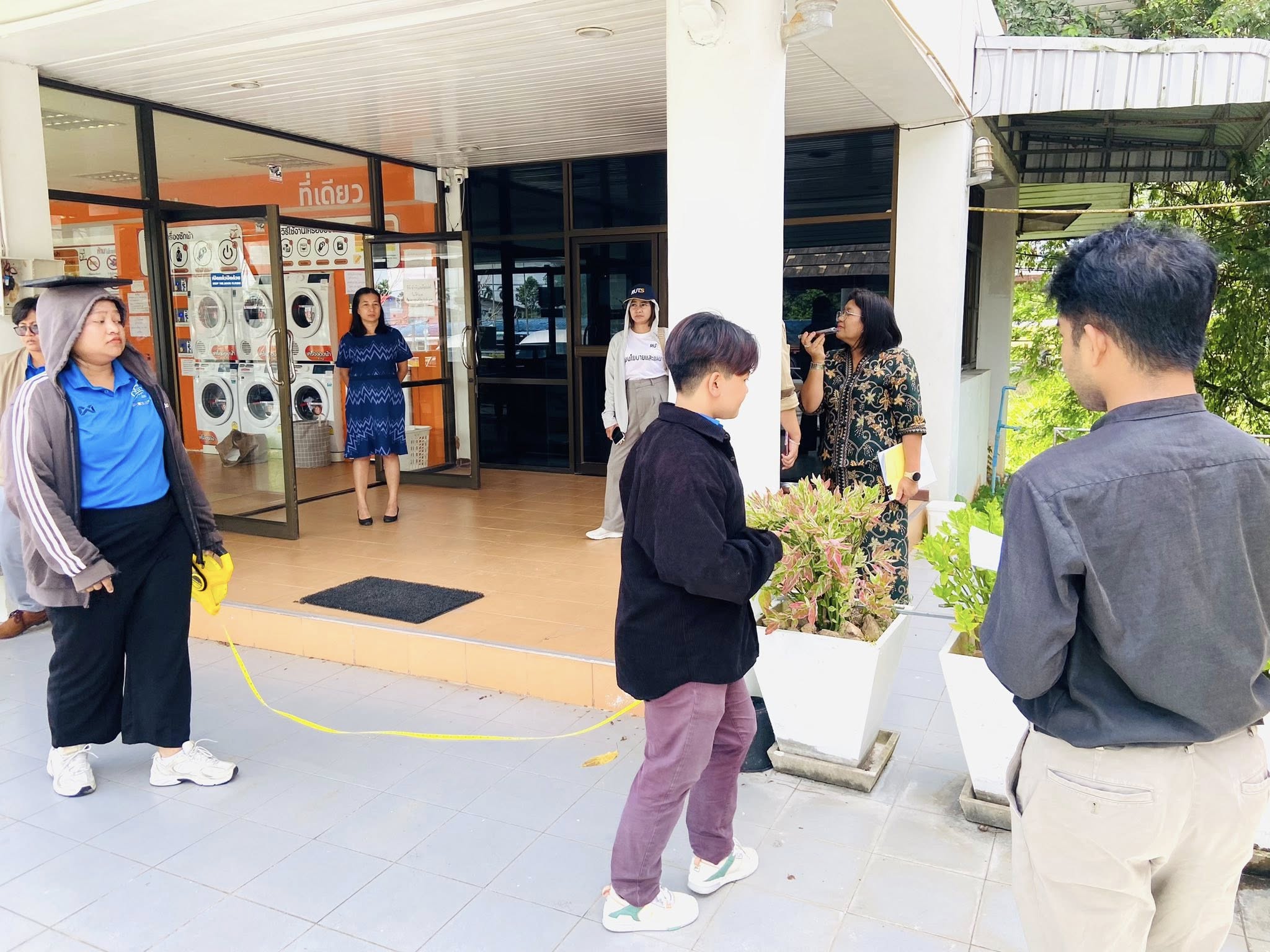 พร้อมกันนี้ยังได้ลงพื้นที่สำรวจบริเวณหน้ามหาวิทยาลัยฯ เพื่อวางแผนการปรับปรุงการใช้ประโยชน์จากพื้นที่ เพื่อรองรับทักษะวิชาชีพของนักศึกษา และลงพื้นที่อาคารกิจกรรมนักศึกษา เพื่อวางแผนปรับปรุงพัฒนาระบบไฟฟ้าในอาคารดังกล่าว ให้พร้อมและเพียงพอต่อการใช้งานของนักศึกษา