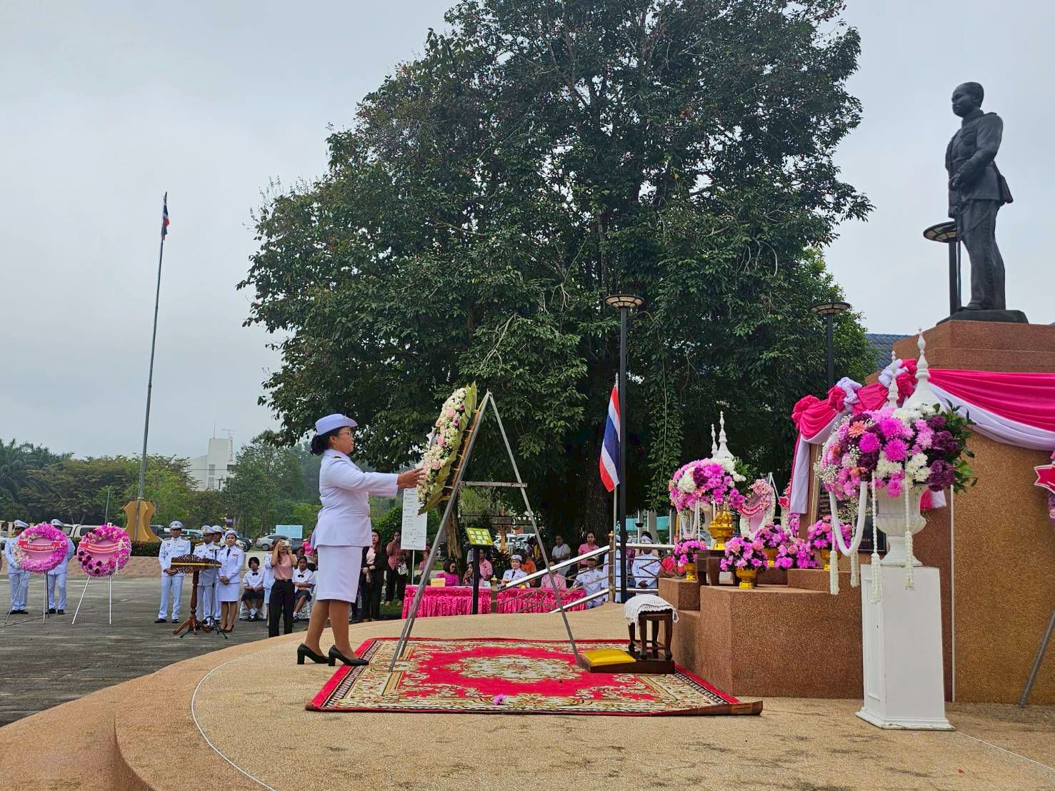 วันที่ 23 ตุลาคม 2568 เนื่องใน “วันปิยมหาราช” มหาวิทยาลัยเทคโนโลยีราชมงคลศรีวิชัย วิทยาเขตนครศรีธรรมราช พื้นที่ทุ่งใหญ่ นำโดย ผู้ช่วยศาสตราจารย์ ดร.อวยพร วงศ์กูล ผู้อำนวยการสำนักงานวิทยาเขตนครศรีธรรมราช คณะผู้บริหาร บุคลากร ตัวแทนนักศึกษา เข้าร่วมพิธีวางพวงมาลาที่ประดับตกแต่งด้วยดอกไม้สีชมพู ซึ่งเป็นสีประจำพระองค์ ภายใต้การจัดพิธีน้อมรำลึกเนื่องในวันคล้ายวันสวรรคต พระบาทสมเด็จพระจุลจอมเกล้าเจ้าอยู่หัว รัชกาลที่ 5