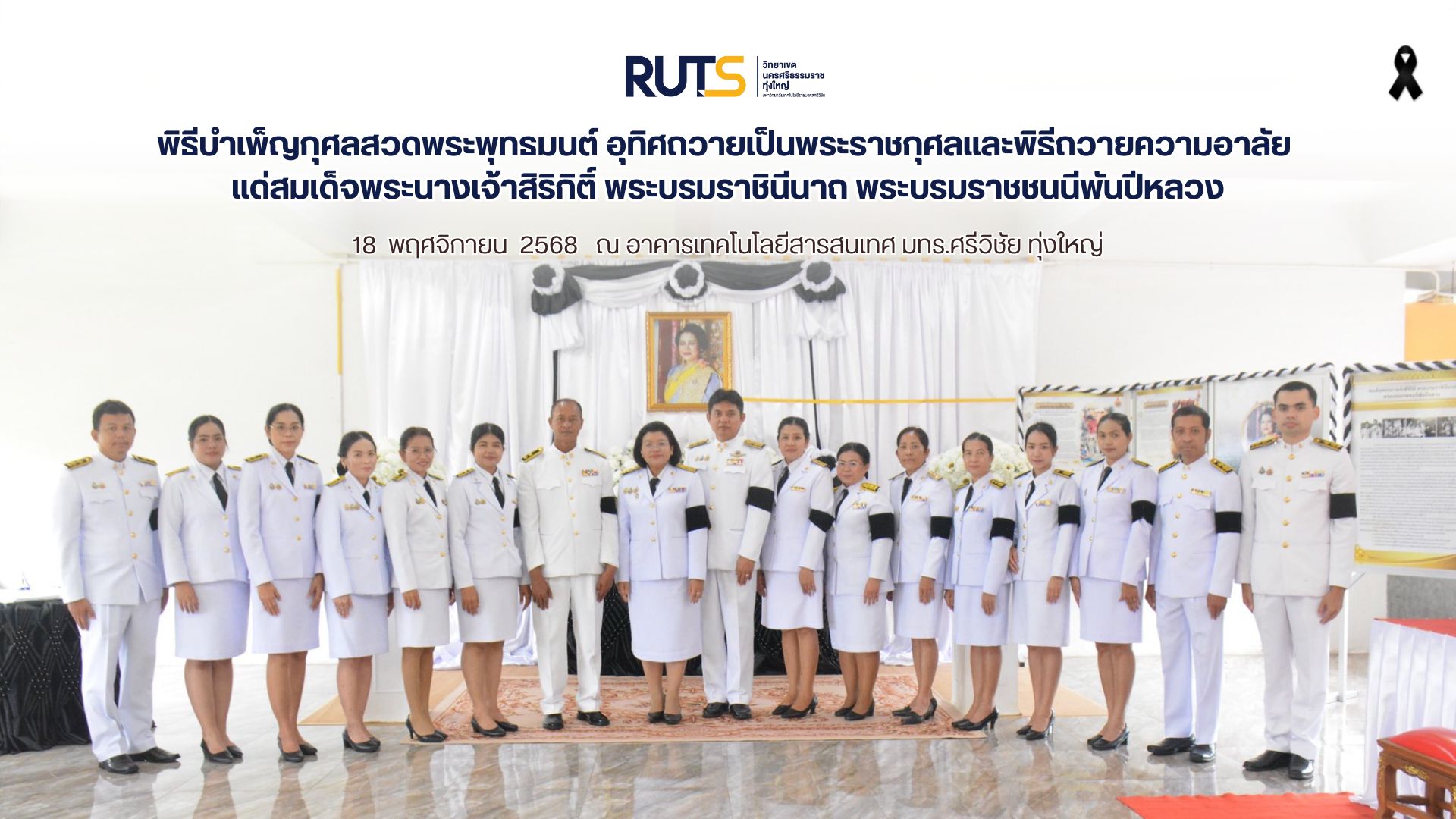 วันที่ 18 พฤศจิกายน 2568 มหาวิทยาลัยเทคโนโลยีราชมงคลศรีวิชัย วิทยาเขตนครศรีธรรมราช พื้นที่ทุ่งใหญ่ พิธีบำเพ็ญกุศลสวดพระพุทธมนต์ อุทิศถวายเป็นพระราชกุศลและพิธีถวายความอาลัย แด่สมเด็จพระนางเจ้าสิริกิติ์ พระบรมราชินีนาถ พระบรมราชชนนีพันปีหลวง ณ อาคารเทคโนโลยีสารสนเทศ วิทยาเขตนครศรีธรรมราช พื้นที่ทุ่งใหญ่