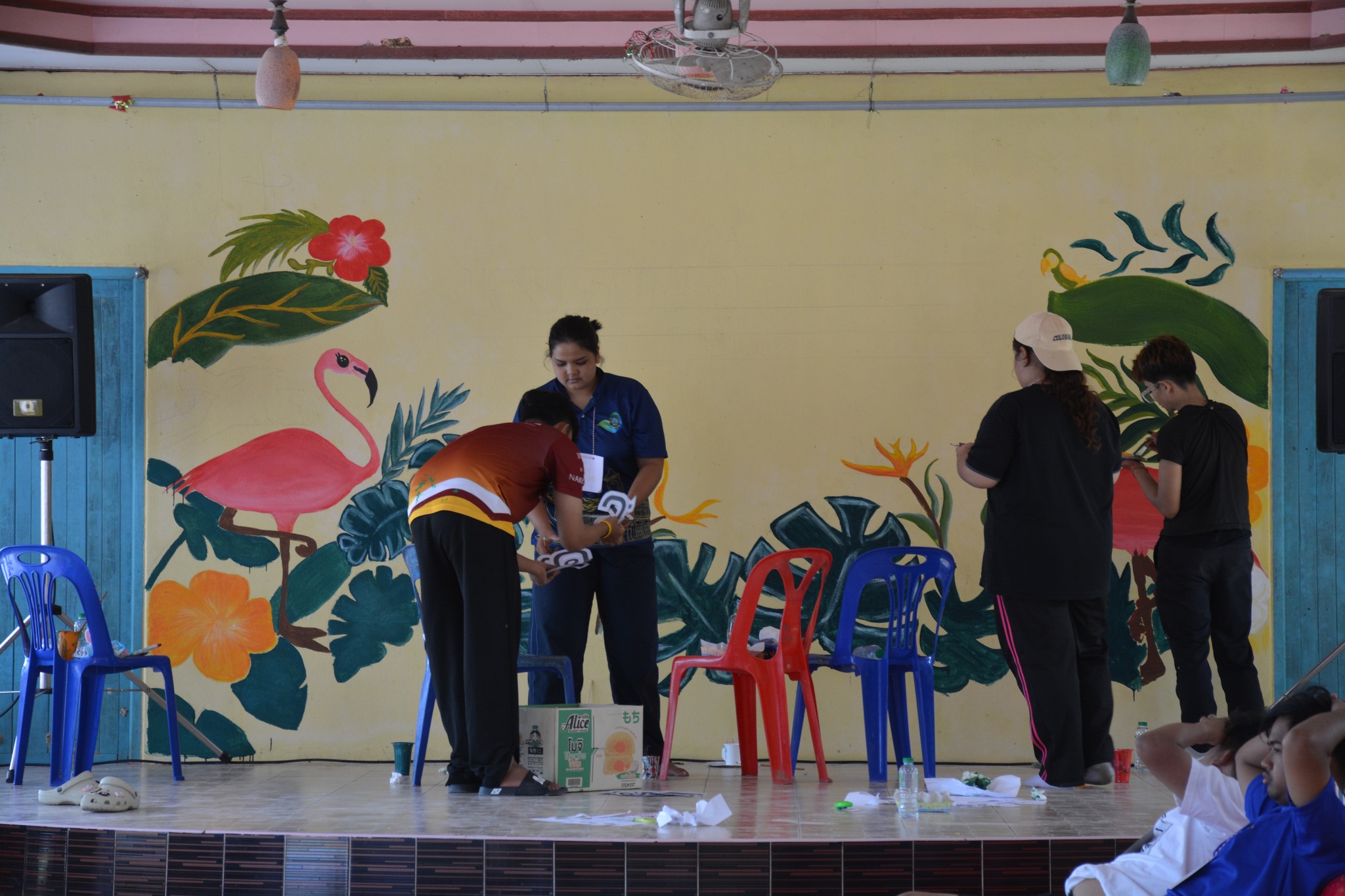 ภายในค่ายมีกิจกรรมหลากหลายที่มุ่งเน้นให้เยาวชนได้เรียนรู้ทั้งภาคทฤษฎีและภาคปฏิบัติ เช่น การให้ความรู้เกี่ยวกับโทษและภัยของยาเสพติด การเสริมสร้างทักษะการเป็นผู้นำเยาวชน การทำงานเป็นทีม นอกจากนี้ ผู้เข้าร่วมค่ายยังได้ร่วมกันทำกิจกรรมจิตอาสา “แต้มสีเติมฝันโรงเรียนน้อง” โดยช่วยกันทาสีกำแพงโรงเรียน ทาสีเครื่องเล่น ปรับปรุงภูมิทัศน์ และสร้างสรรค์ภาพวาดสีสันสดใสบนผนังอาคารเรียน เพื่อสร้างบรรยากาศที่สวยงามและส่งเสริมแรงบันดาลใจในการเรียนรู้ให้แก่นักเรียนรุ่นน้อง