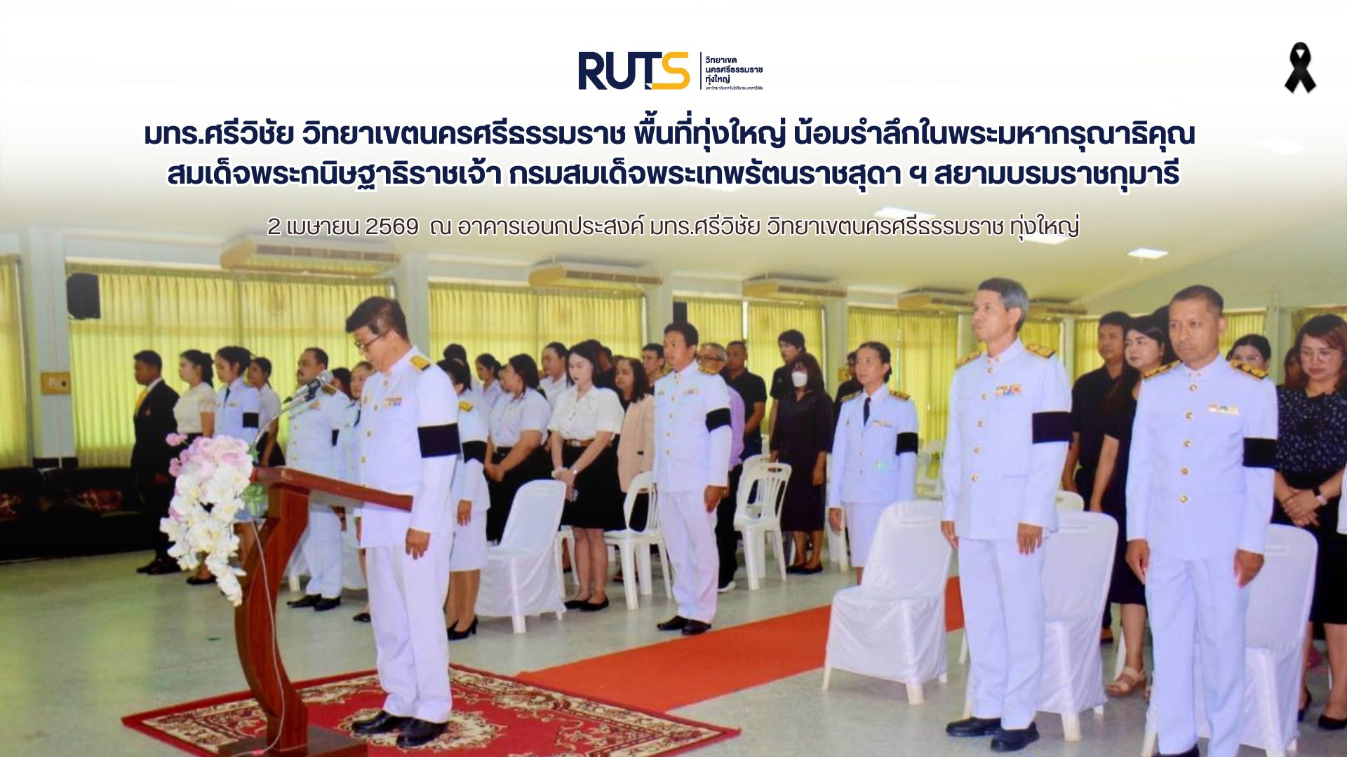 โดยมี คณะผู้บริหาร คณบดี รองคณบดี บุคลากร และ ตัวแทนนักศึกษา คณะเกษตรศสาตร์ คณะวิทยาศาสตร์และเทคโนโลยี คณะอุตสาหกรรมเกษตร คณะสัตวแพทยศาสตร์ และ สำนักงานวิทยาเขตนครศรีธรรมราช พื้นที่ทุ่งใหญ่ ร่วมถวายพานพุ่มดอกไม้โทนสีม่วง ลงนามถวายพระพรในพิธีดังกล่าว เพื่อแสดงความจงรักภักดี และสำนึกในพระมหากรุณาธิคุณ ณ อาคารเอนกประสงค์ มหาวิทยาลัยเทคโนโลยีราชมงคลศรีวิชัย พื้นที่ทุ่งใหญ่ อ.ทุ่งหญ่ จ.นครศรีธรรมราช